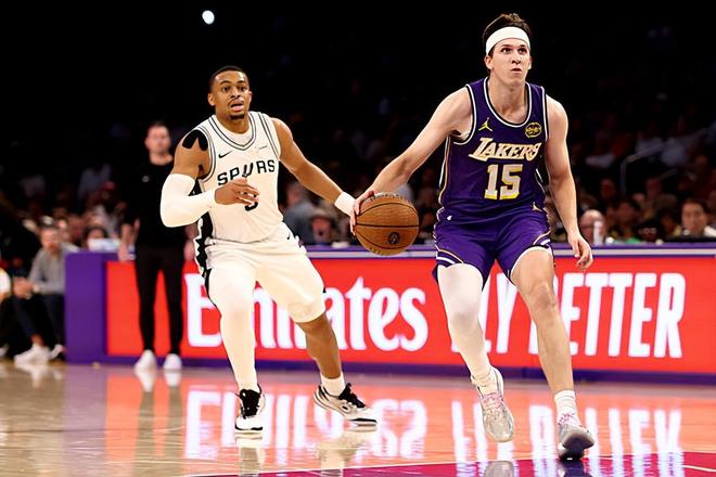 本场比赛中,湖人的先发后场大将奥斯汀-里夫斯(Austin Reaves)的表现令人刮目相看。里夫斯全场出场39分49秒,投篮16中6,三分线外6中2,罚球1中1,得到了15分8篮板7助攻1抢断的数据,还有3次失误和5次犯规,正负值为-5。里夫斯在进攻端效率一般,他的出手机会其实并不少,但是得分能力完全没有发挥出来,显得有些挣扎。里夫斯展现出了一定的传球能力和组织能力,但是也同样没有发挥出更大的价值。里夫斯本身就不是可靠的防守者,他在防守端也是显得有些吃力的。总体来看,里夫斯在攻防两端都没有办法起到很好的效果,他的实力没有得到充分地体现。作为一名实力不俗的得分手,这样的糟糕表现也在一定程度上导致了球队的失利 。